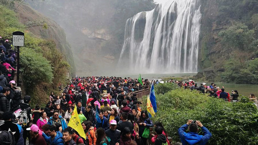 People visit the Huangguoshu Waterfall in Anshun, southwest China's Guizhou Province, Jan. 31, 2017. Some 258.1 million visitor trips have been made in China during the first four days of the Lunar New Year holiday, which started Friday, a 14.2 percent increase compared with the same period last year, according to official data. [Photo/Xinhua] |