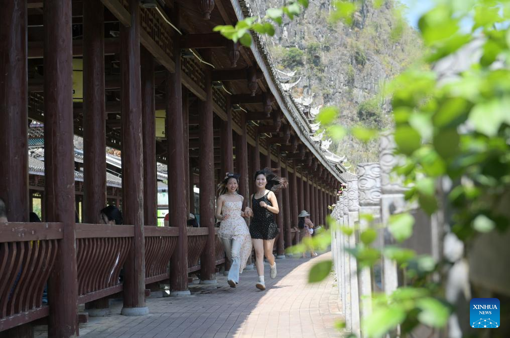 Tourists enjoy themselves at a scenic spot in Baise, south China's Guangxi Zhuang Autonomous Region, May 3, 2025. People across China enjoy the ongoing May Day holiday in various ways. [Photo/Xinhua]