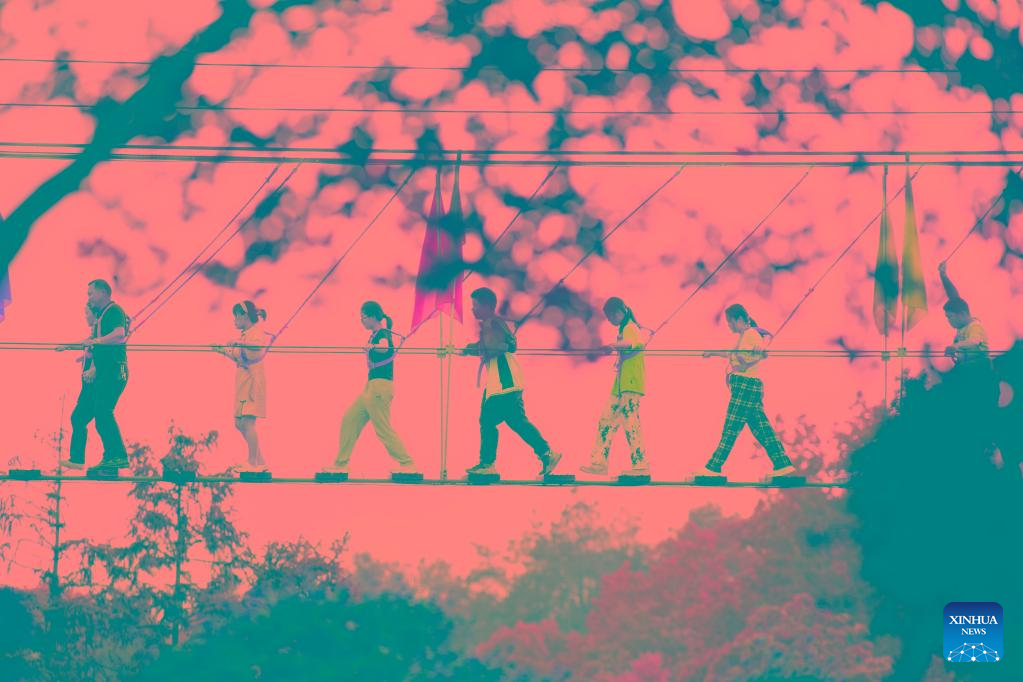 Tourists visit an ecological park in Loudi City, central China's Hunan Province, May 3, 2025. People across China enjoy the ongoing May Day holiday in various ways. [Photo/Xinhua]