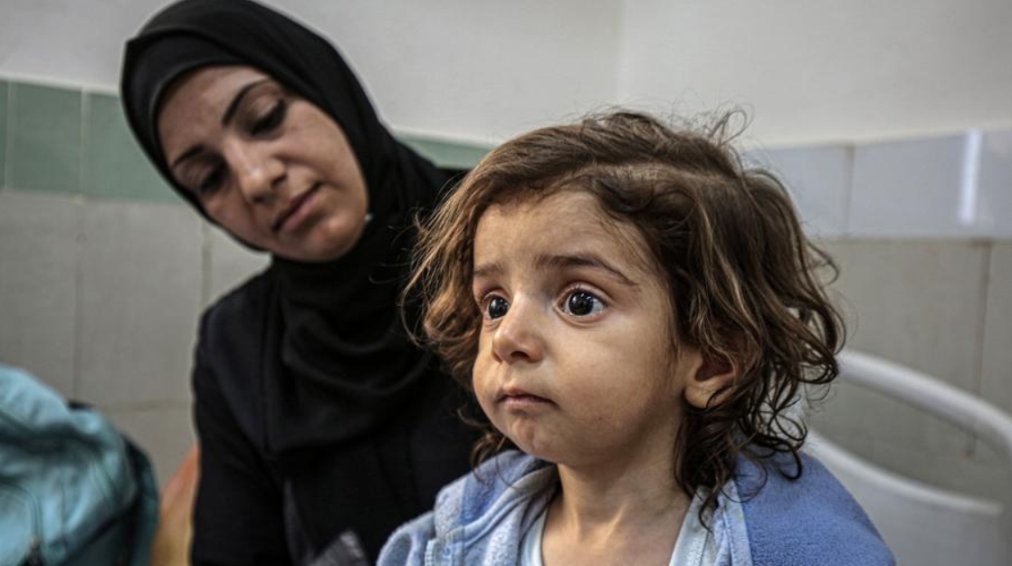 A Palestinian child suffering from severe malnutrition is pictured at the Al-Rantisi Children's Hospital in Gaza City, May 4, 2025. [Photo/Xinhua]