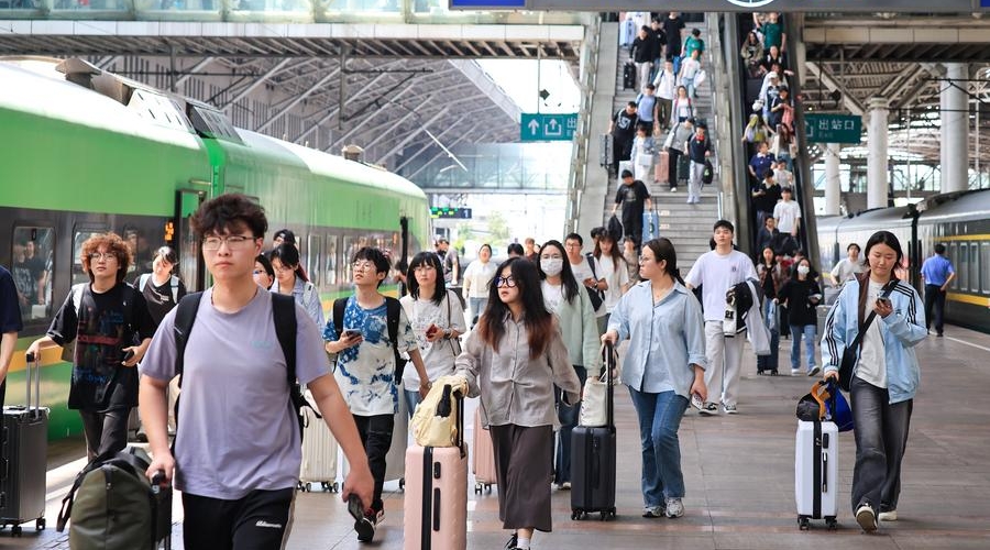 Passengers prepare to board a train at Nanjing Railway Station in Nanjing, east China's Jiangsu Province, April 30, 2025. [Photo/Xinhua]