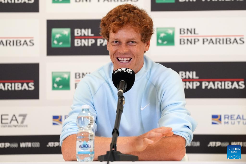 Italy's Jannik Sinner speaks during a press conference for the Italian Open, in Rome, Italy, May 5, 2025. The world top-ranked player returns to the Italian Open tennis tournament after a three-month doping ban imposed by the World Anti-Doping Agency (WADA). (Photo by Alberto Lingria/Xinhua)