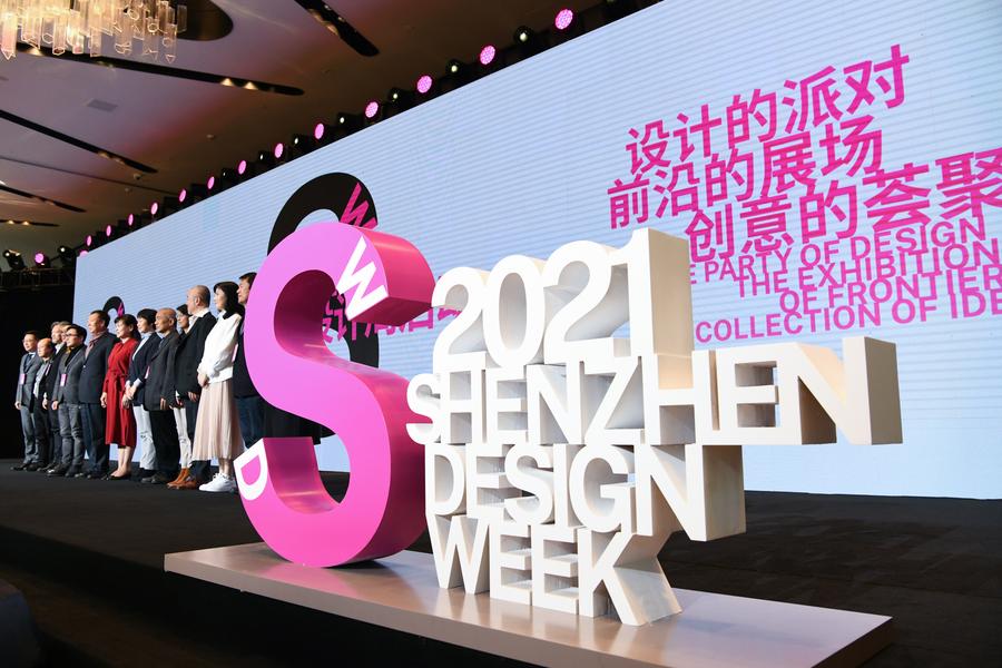 An opening ceremony is held at the main exhibition site of the 2021 Shenzhen Design Week in Shenzhen, south China's Guangdong Province, Dec. 25, 2021. [Photo/Xinhua]