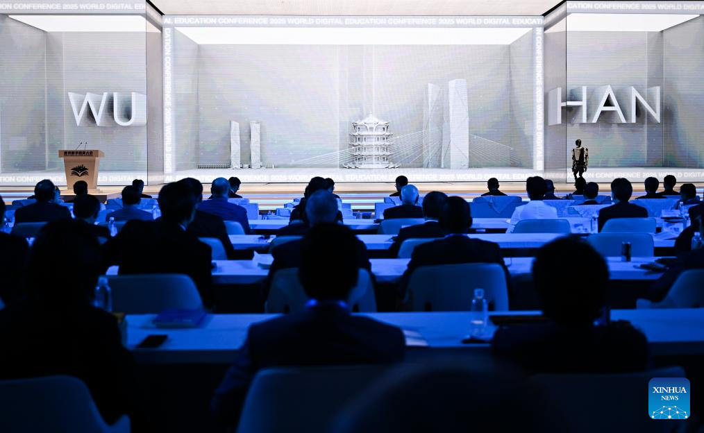 This photo taken on May 14, 2025 shows the opening ceremony of the 2025 World Digital Education Conference in Wuhan, central China's Hubei Province. Under the theme of "Education Development and Transformation: The Era of Intelligence," the 2025 World Digital Education Conference opened here on Tuesday. (Xinhua/Du Zixuan)