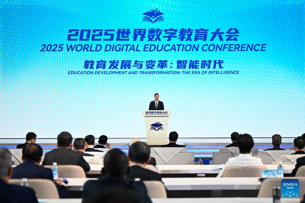 This photo taken on May 14, 2025 shows the opening ceremony of the 2025 World Digital Education Conference in Wuhan, central China's Hubei Province. Under the theme of "Education Development and Transformation: The Era of Intelligence," the 2025 World Digital Education Conference opened here on Tuesday. (Xinhua/Du Zixuan)