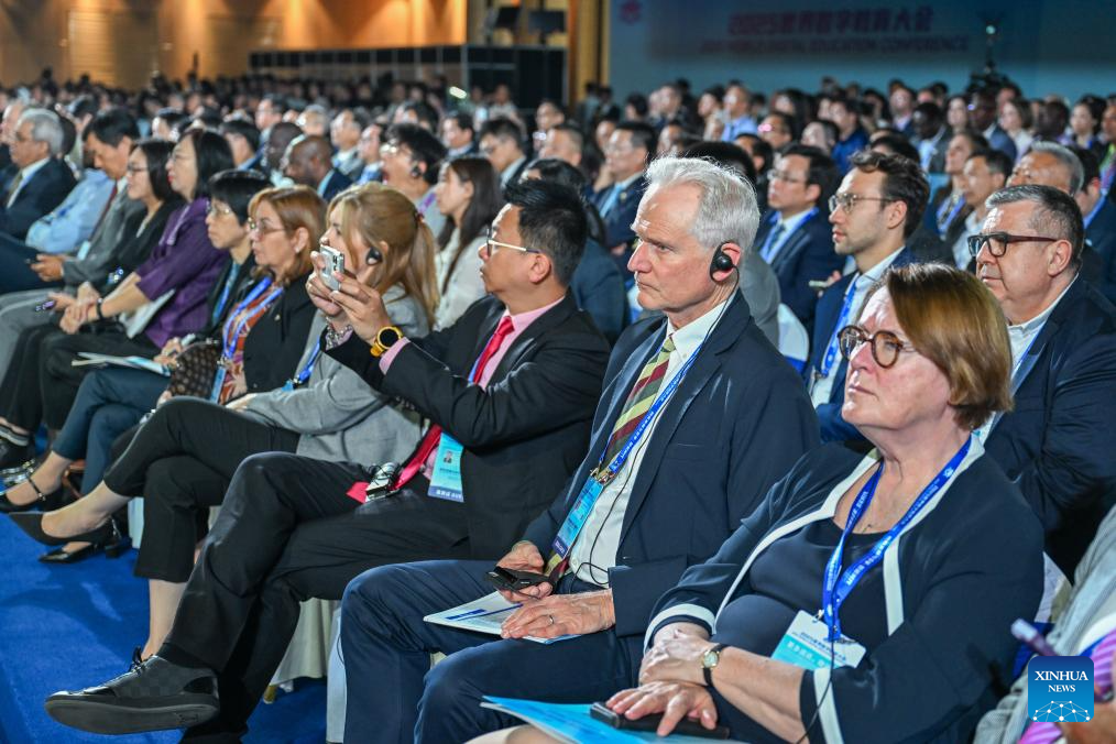 People attend the opening ceremony of the 2025 World Digital Education Conference in Wuhan, central China's Hubei Province, May 14, 2025. Under the theme of "Education Development and Transformation: The Era of Intelligence," the 2025 World Digital Education Conference opened here on Tuesday. (Xinhua/Du Zixuan)
