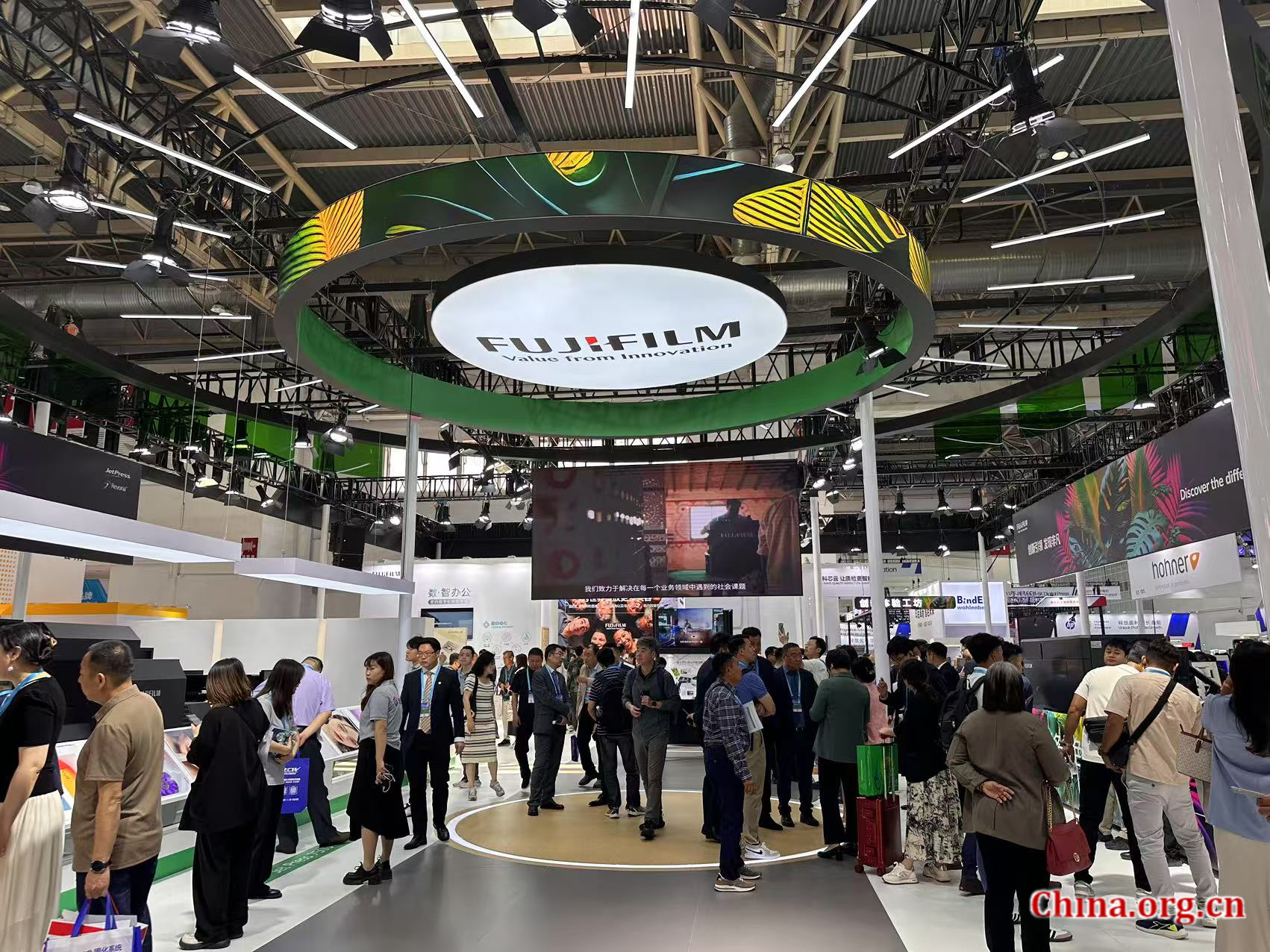 Visitors browse the Fujifilm exhibition area at the 11th Beijing International Printing Technology Exhibition in Beijing, May 15, 2025. [Photo by Liu Caiyi/China.org.cn]