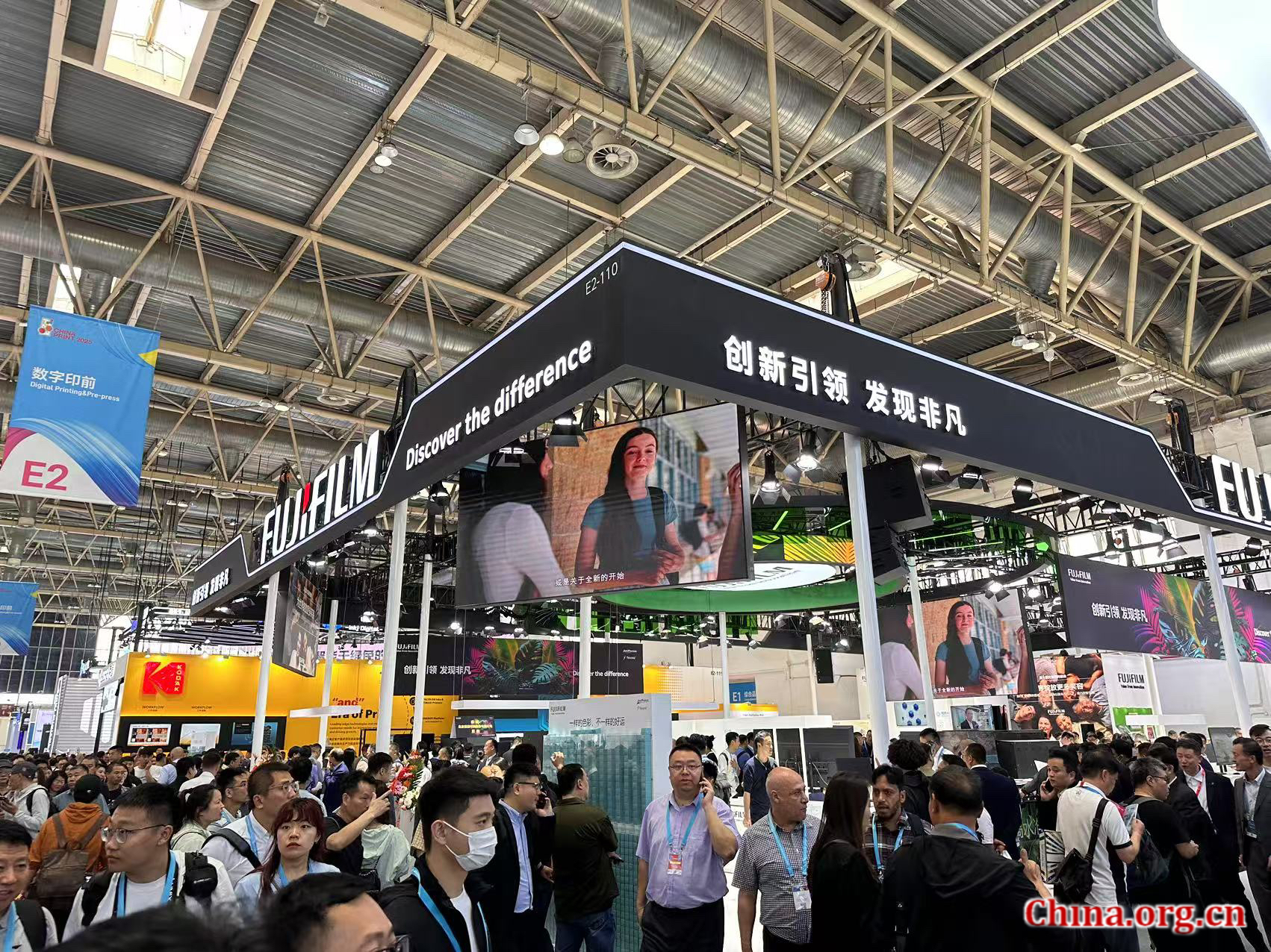 Visitors browse the Fujifilm exhibition area at the 11th Beijing International Printing Technology Exhibition in Beijing, May 15, 2025. [Photo by Liu Caiyi/China.org.cn]