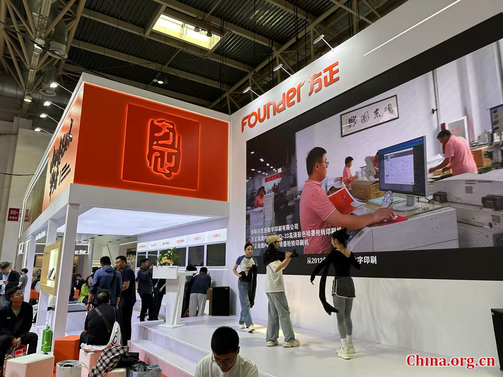 Visitors explore the Founder (Fangzheng) exhibition area at the 11th Beijing International Printing Technology Exhibition in Beijing, May 15, 2025. [Photo by Liu Caiyi/China.org.cn]