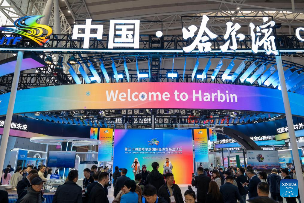 Models present Bosideng products at the 34th Harbin International Economic and Trade Fair in Harbin, capital of northeast China's Heilongjiang Province, May 17, 2025. The fair opened here on Saturday, attracting exhibitors from over 110 countries and regions. (Xinhua/Zhang Tao)