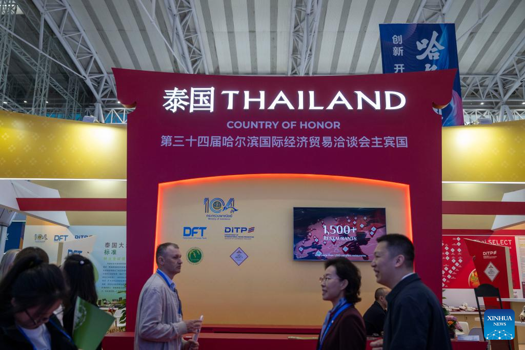 People visit the 34th Harbin International Economic and Trade Fair in Harbin, capital of northeast China's Heilongjiang Province, May 17, 2025. The fair opened here on Saturday, attracting exhibitors from over 110 countries and regions. (Xinhua/Zhang Tao)