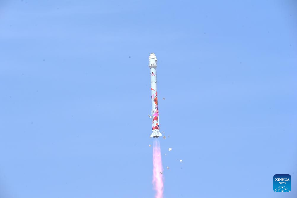 A commercial rocket coded ZQ-2E Y2 blasts off from the Dongfeng commercial space innovation pilot zone near the Jiuquan Satellite Launch Center in northwest China, May 17, 2025. The rocket lifted off on Saturday in northwest China, successfully sending six satellites into space. (Photo by Wang Jiangbo/Xinhua)