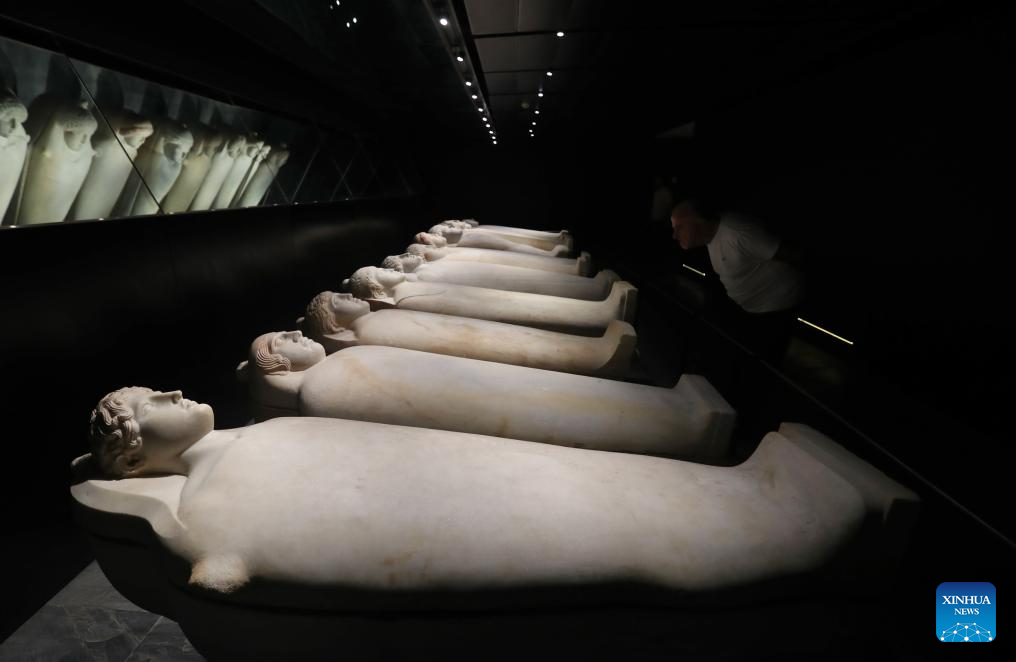 A visitor views exhibits at Lebanon's National Museum in Beirut, Lebanon, on May 18, 2025. On the occasion of International Museum Day, Lebanon's National Museum in Beirut opened its door to the public for free on Sunday, inviting visitors to discover the country's ancient civilizations and archaeological treasures. (Xinhua/Bilal Jawich)