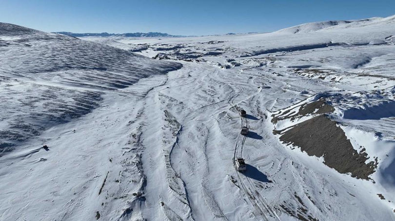 A patrol team ploughs through ice and snow in Hoh Xil, northwest China's Qinghai Province, on Feb. 9, 2024, or the Eve of Chinese New Year. [Photo/Xinhua]