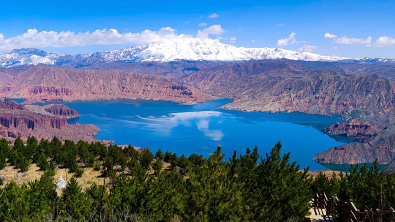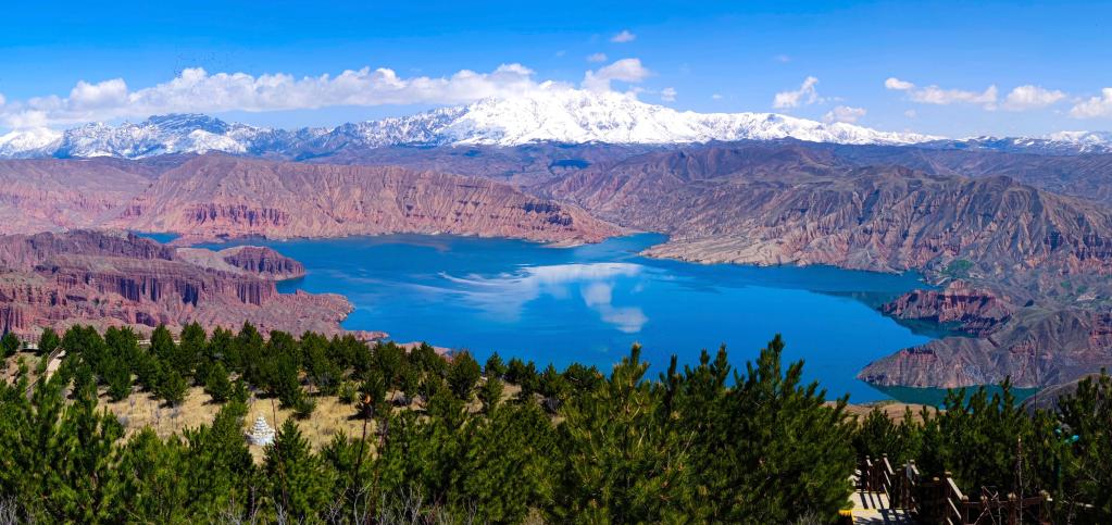An aerial drone photo taken on April 28, 2024 shows a view of the Kanbula National Geopark in Huangnan Tibetan Autonomous Prefecture, northwest China's Qinghai province. [Photo/Xinhua]