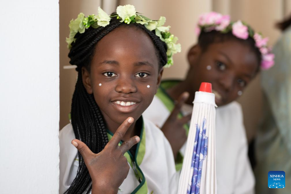 The event featured 10 students competing in the final of the 24th "Chinese Bridge" Chinese Proficiency Competition for Foreign College Students in Zambia, and nine students in the 18th "Chinese Bridge" Chinese Proficiency Competition for Foreign Secondary School Students in Zambia. (Xinhua/Peng Lijun)