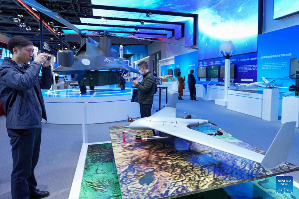 A visitor takes photos of an unmanned aerial vehicle during a permanent exhibition at the Zhongguancun Exhibition Center in Beijing, capital of China, March 28, 2025. [Photo/Xinhua]