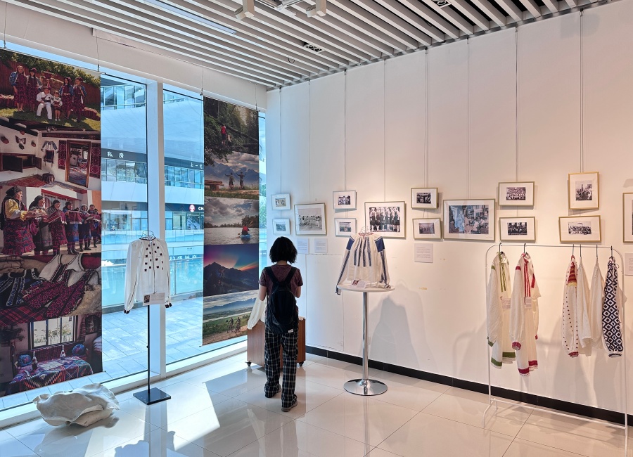 A photography display shows everyday life in Fagaras, connecting the region's textile art to its living culture at the Romanian Cultural Institute in Beijing, July 9, 2025. [Photo by Liu Ziying/China.org.cn]
