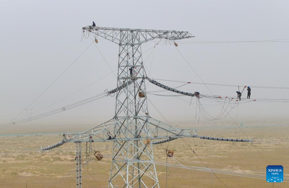 Workers weather desert extremes to complete 'power expressway loop' in Xinjiang