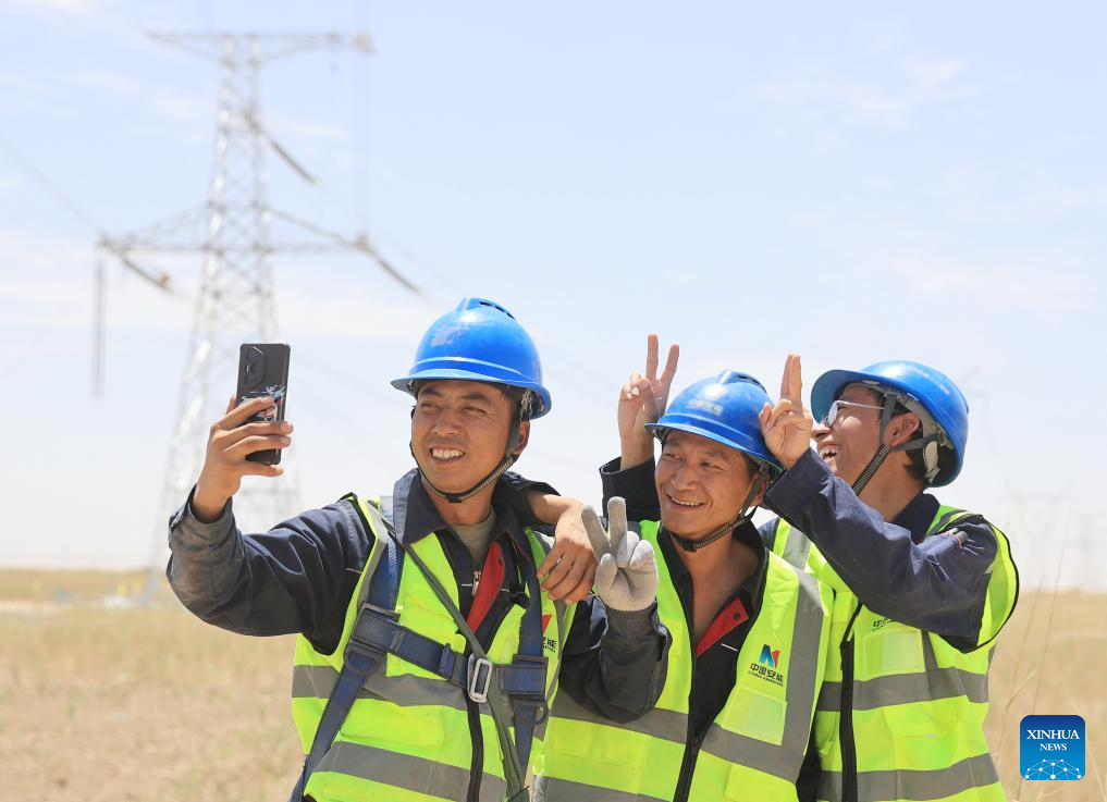 Workers weather desert extremes to complete 'power expressway loop' in Xinjiang