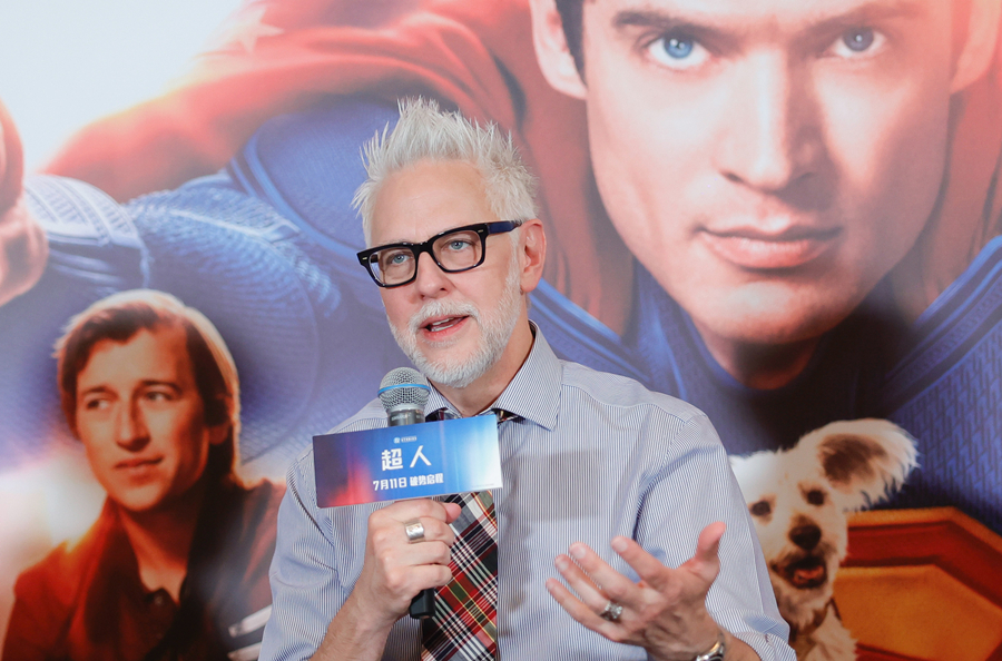 James Gunn speaks at a press event ahead of the China premiere of "Superman" in Beijing, July 10, 2025. [Photo courtesy of Warner Bros. Discovery]
