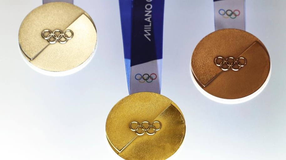 The medals for Milano Cortina 2026 Olympic and Paralympic Winter Games are displayed during the unveiling ceremony in Palazzo Balbi, Venice, Italy, on July 15, 2025. (Xinhua/Li Jing)