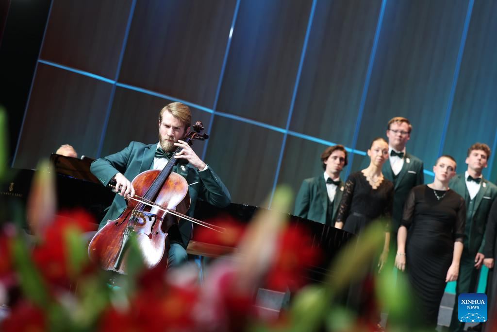 Teenagers from the United States perform at China National Opera House in Beijing, capital of China, July 16, 2025. A closing performance of Bond with Kuliang: 2025 China-U.S. Youth Choir Festival, with the theme of "Singing for Peace," was staged in Beijing on Wednesday. (Xinhua/Lu Ye)