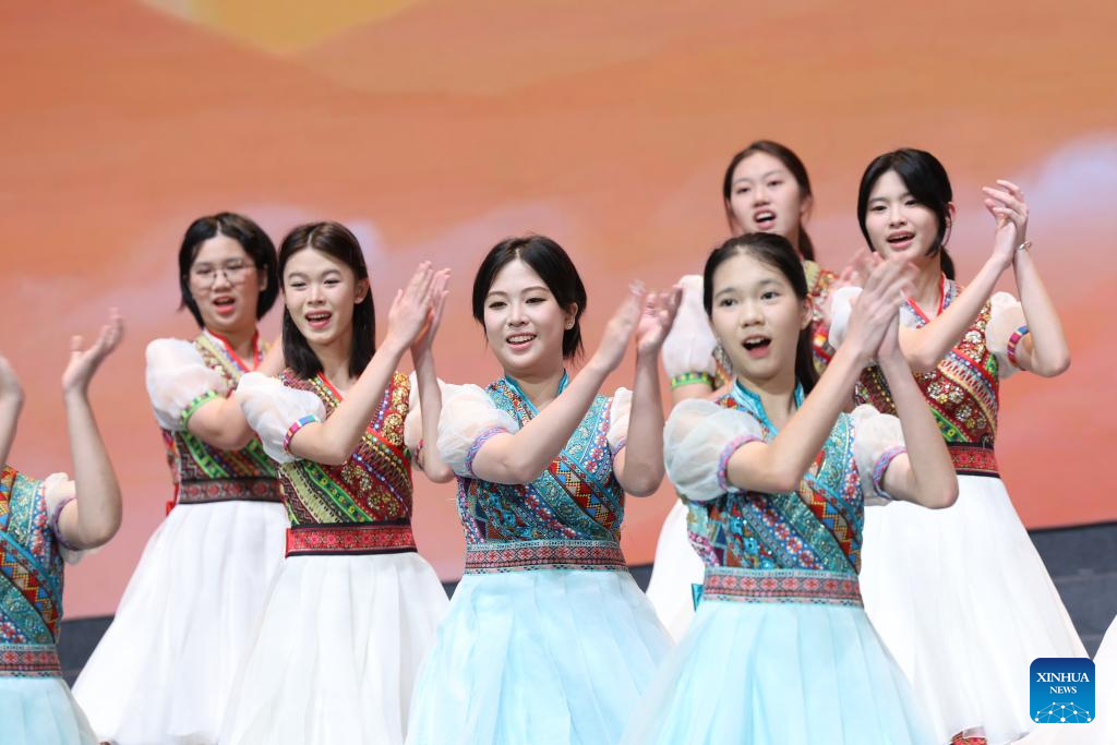 Teenagers from China sing during a performance at China National Opera House in Beijing, capital of China, July 16, 2025. A closing performance of Bond with Kuliang: 2025 China-U.S. Youth Choir Festival, with the theme of "Singing for Peace," was staged in Beijing on Wednesday. (Xinhua/Lu Ye)