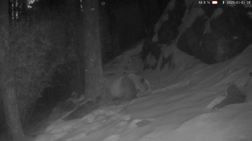 Staff at the Zhouzhi National Nature Reserve Administration in northwest China's Shaanxi province recently discovered rare footage of a brown giant panda walking in the snow while reviewing data from infrared cameras in 2025.