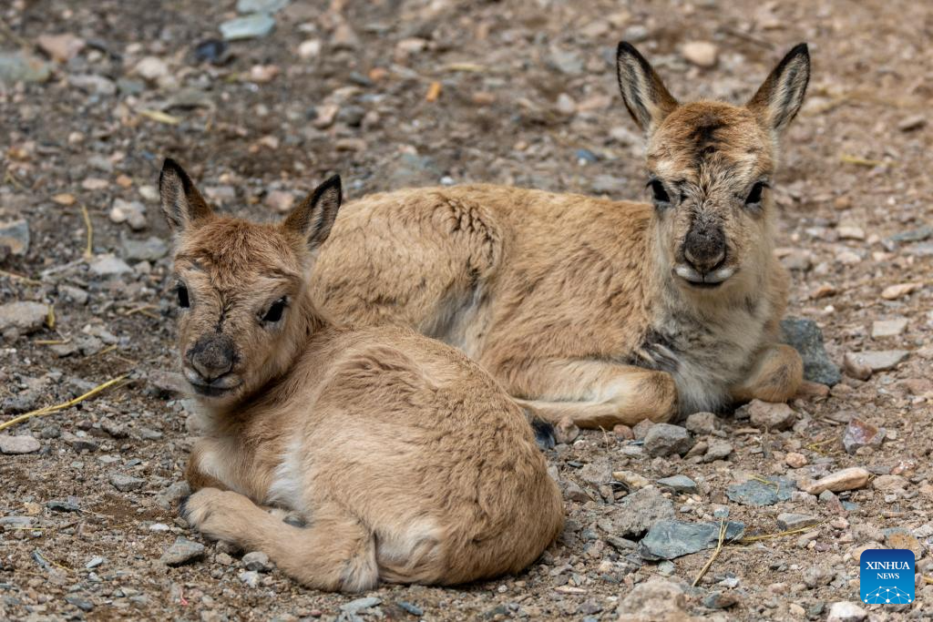 Two rescued Tibetan antelope calves rest at a management station in Changtang National Nature Reserve in southwest China's Xizang Autonomous Region, July 14, 2025. The Senlong Zangbo River, located in Changtang National Nature Reserve in Nagqu, is a vital migration route for Tibetan antelopes. Each July, Tibetan antelope calves and their mothers cross the river and migrate to their habitats. Over the past three years, the number of Tibetan antelope migrating across this river has exceeded 150,000 each year.
