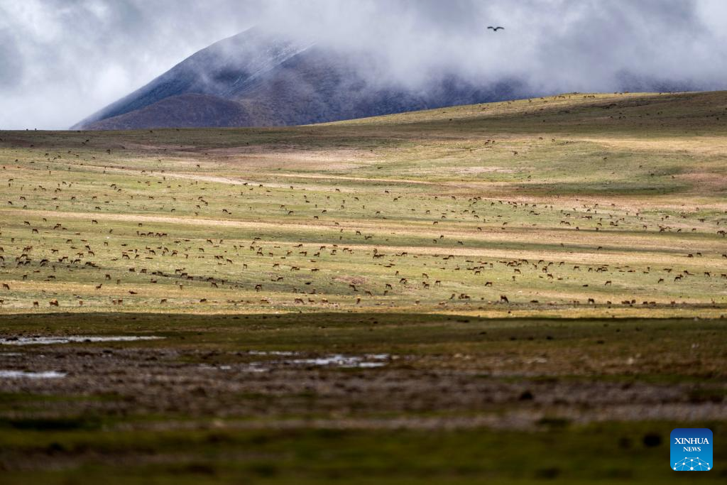Thanks to effective conservation measures, the number of Tibetan antelopes in Xizang has increased to more than 300,000, according to data from the region's ecology and environment department. (Xinhua/Jiang Fan)