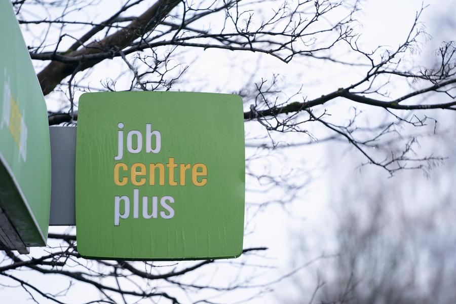 Photo taken on Jan. 18, 2022 shows a job center sign in Manchester, Britain. [Photo/Xinhua]