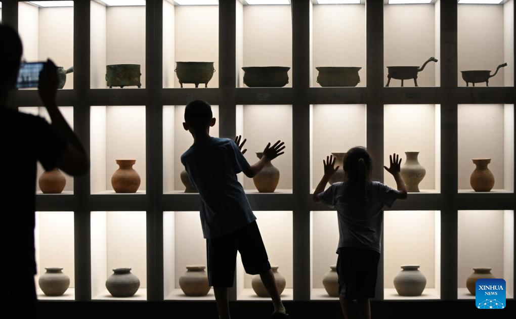 Children visit the Tengzhou Museum in Tengzhou, east China's Shandong Province, Aug. 3, 2025. [Photo/Xinhua]