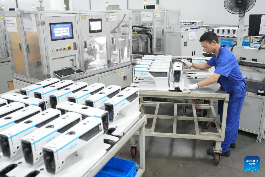 A staff member is seen busy on a smart production line at a factory of Jack Technology Co., Ltd. in Taizhou Bay, Taizhou City, east China's Zhejiang Province, July 17, 2025. (Xinhua/Weng Xinyang)