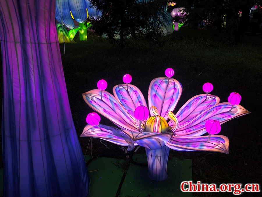 A flower-shaped lantern on display at Shijingshan Amusement Park in Beijing, Aug. 5, 2025. [Photo by Xu Xiaoxuan/China.org.cn]
