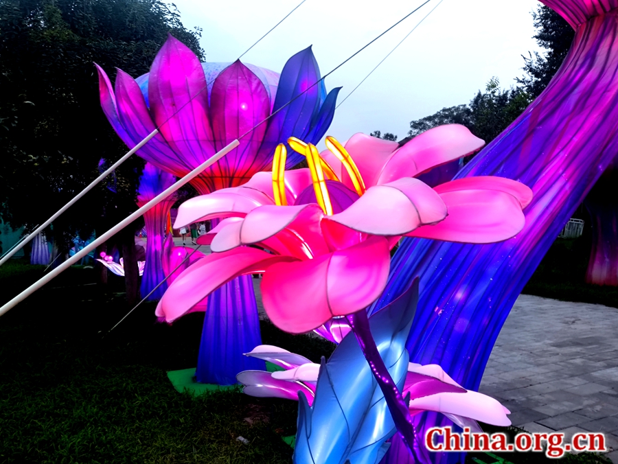 Flower-themed lanterns at Shijingshan Amusement Park in Beijing, Aug. 5, 2025. [Photo by Xu Xiaoxuan/China.org.cn]