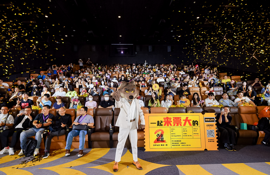The Beijing premiere theater featured themed decorations — from gold coins to oversized posters — with a performer in Wolf's costume posing for photos with attendees. The event sparked positive word-of-mouth coverage ahead of the film's nationwide release on Aug. 16.