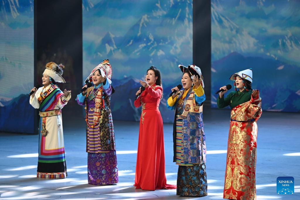 A gala entitled "Joyful Songs of the Snowy Plateau Region" is held to mark the 60th founding anniversary of Xizang Autonomous Region, in regional capital Lhasa, Aug. 20, 2025. (Xinhua/Xie Huanchi)