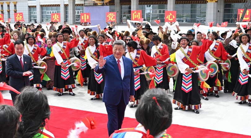 As Xi, also general secretary of the Communist Party of China Central Committee and chairman of the Central Military Commission, was leaving Xizang, crowds lined the streets and gathered at the airport to see him off.