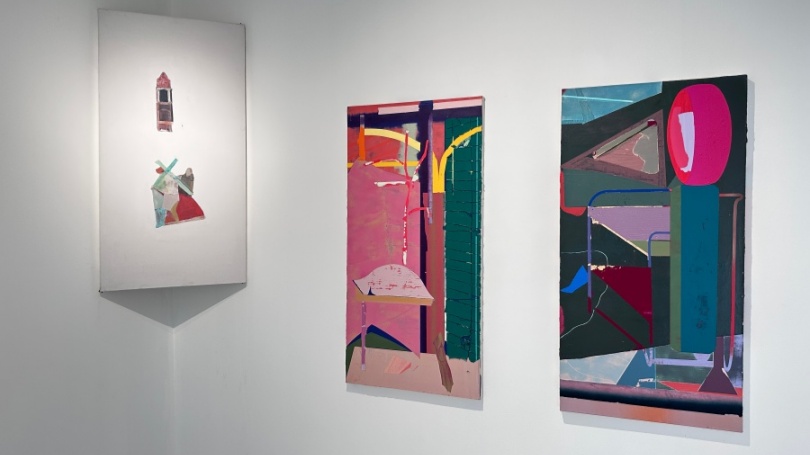 Wang incorporates water into his painting process, letting acrylic paint mix with water to create flowing colors and sediment patterns that capture the passage of time on canvas. Li works with windows as light filters, combining brushstrokes with reflective surfaces to create what he describes as a "landscape spectrum."