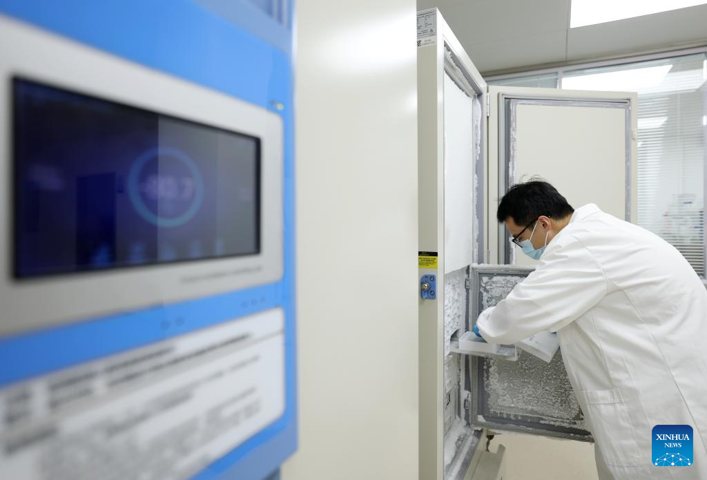 A researcher works at the National Conservation and Research Center for Milu, at Milu Park in Beijing, capital of China, Aug. 18, 2025. (Xinhua/Zhang Chenlin)