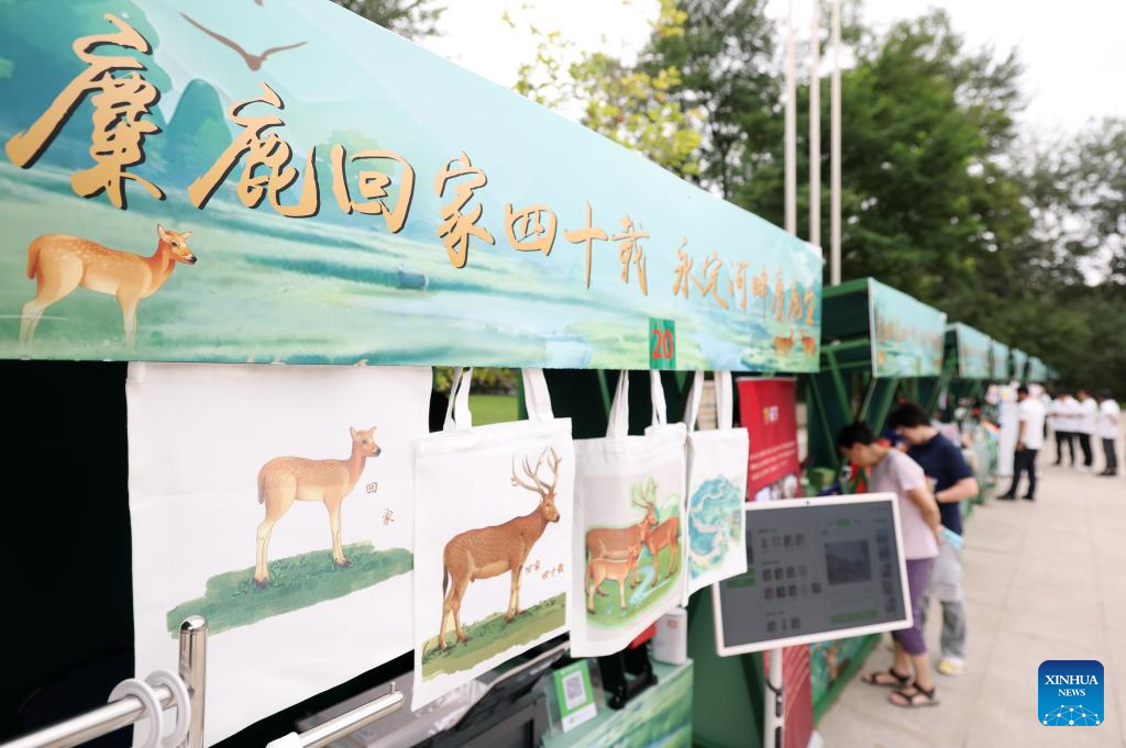 Milu Park holds activities to celebrate the 40th anniversary of the reintroduction of milu deer to China in Beijing, capital of China, Aug. 24, 2025. (Xinhua/Zhang Chenlin)