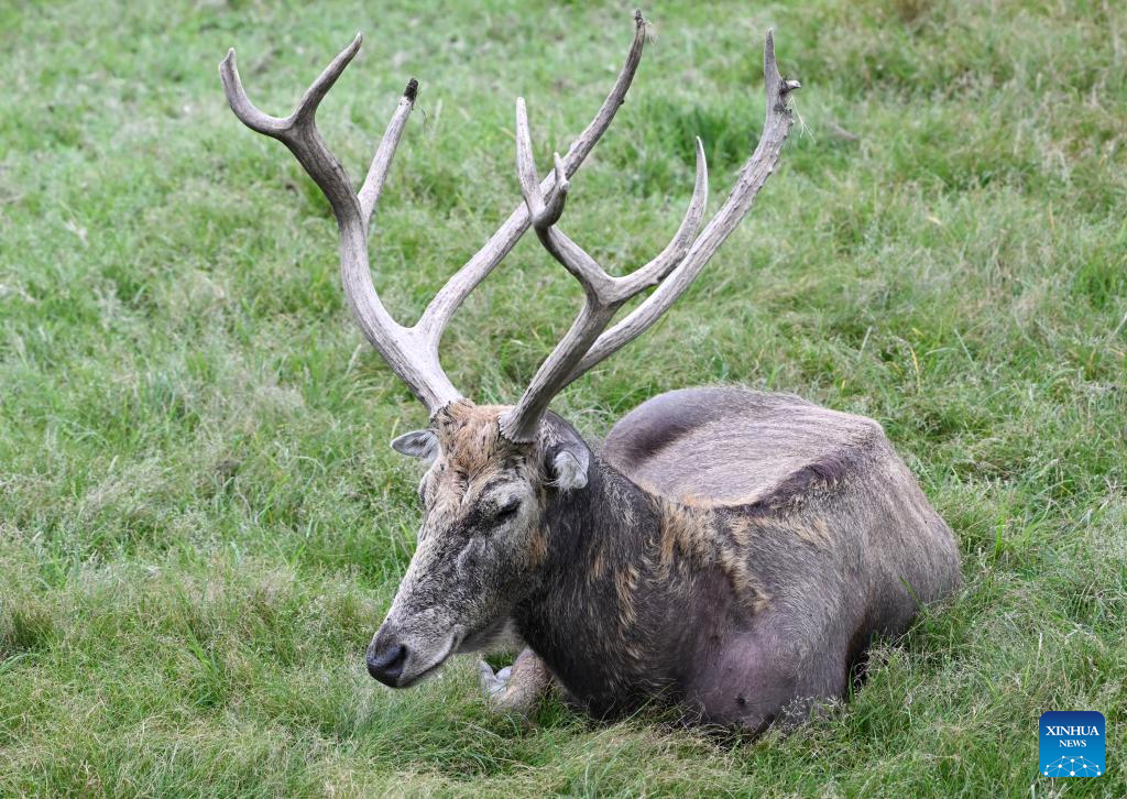 A milu deer is pictured at Milu Park in Beijing, capital of China, Aug. 24, 2025. (Xinhua/Zhang Chenlin)