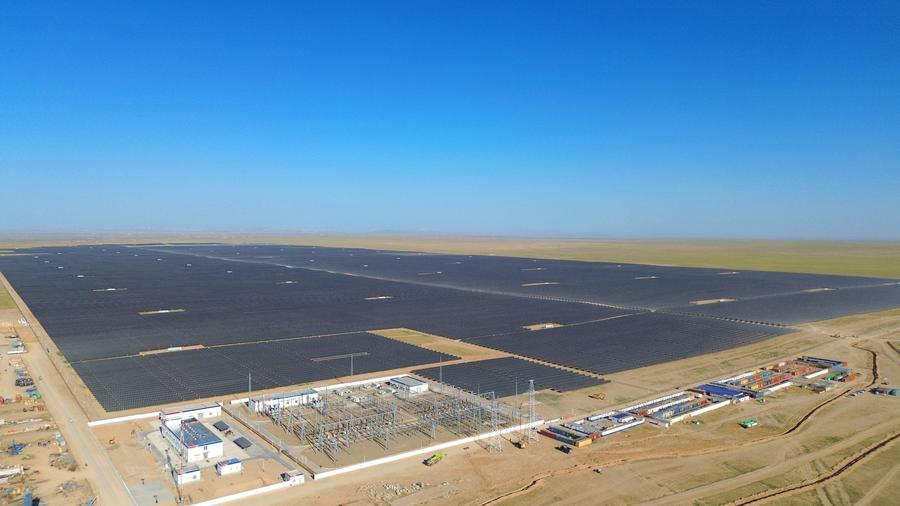 An aerial drone photo shows a view of the 1 GW Photovoltaic Project invested and constructed by Chinese company in the Kashkadarya region of Uzbekistan, June 20, 2024. [Photo/Xinhua]