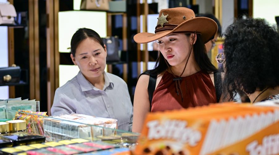A tourist visits a duty-free shop at the Horgos International Border Cooperation Center on the China-Kazakhstan border in Horgos, northwest China's Xinjiang Uygur Autonomous Region, July 26, 2024. [Photo/Xinhua]