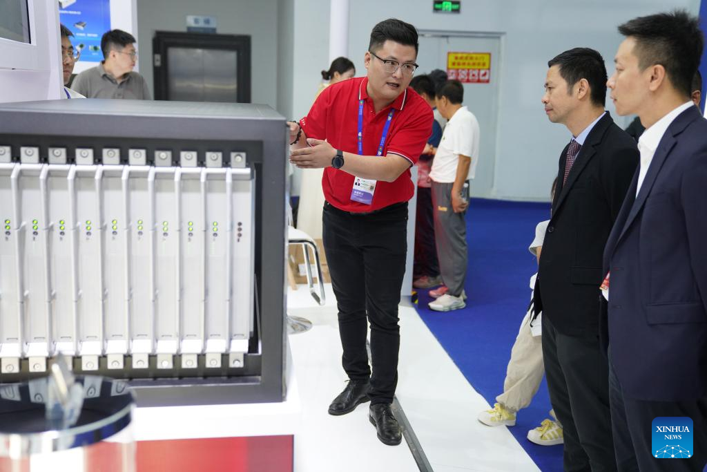 An exhibitor introduces an innovative server product to visitors during the 7th China-Arab States Expo in Yinchuan, northwest China's Ningxia Hui Autonomous Region, Aug. 29, 2025. The expo, held here from August 28 to 31, has arranged over 40 investment promotion events that focused on pragmatic economic and trade cooperation, and led to 331 cooperation documents. (Xinhua/Zhao Yusi)