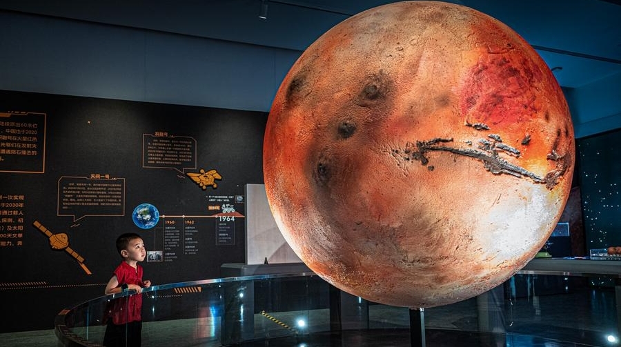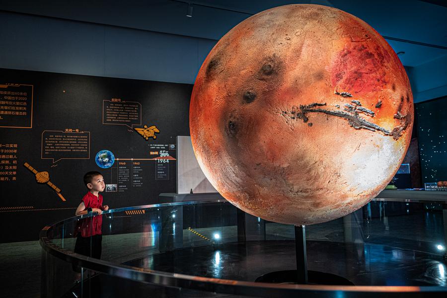 A boy visits a science fiction-themed planetary science experience exhibition at China Building Science Museum in Wuhan, central China's Hubei province, July 18, 2025. [Photo/Xinhua]