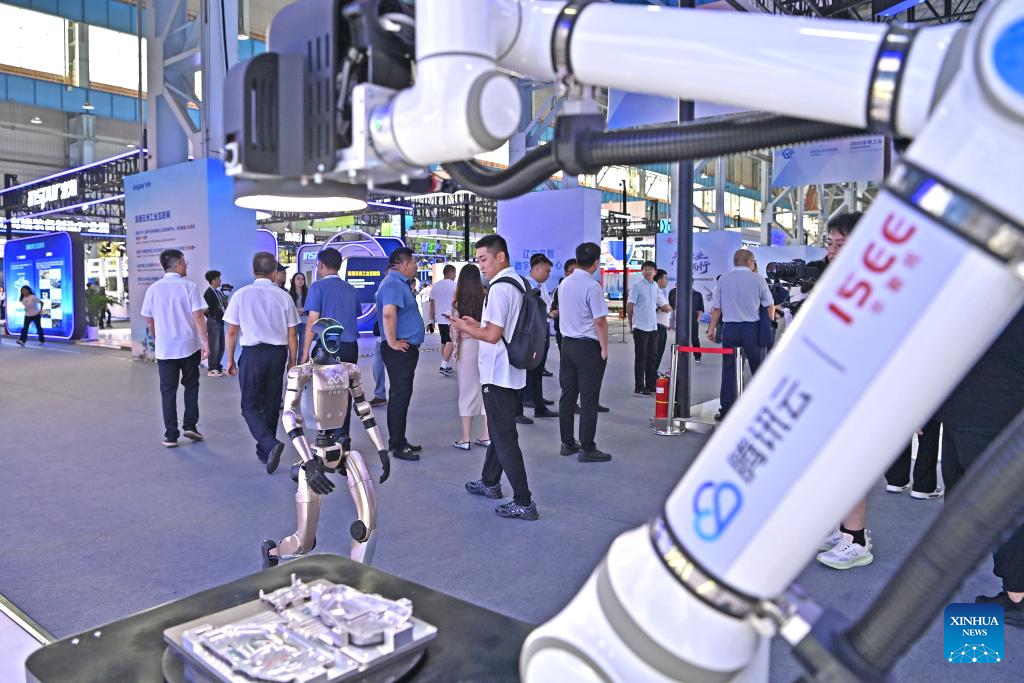 A running robot is pictured at the exhibition area of the 2025 Global Industrial Internet Conference in Shenyang, northeast China's Liaoning Province, Sept. 6, 2025. Themed "Digital New Chapter, Intelligent New Quality," the 2025 Global Industrial Internet Conference kicked off here on Saturday and will last till Sept. 8. (Xinhua/Zhou Hua)