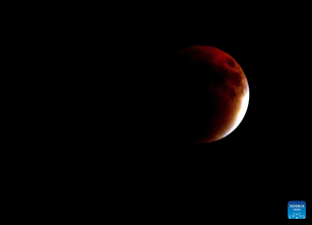 The moon is seen during a lunar eclipse in Baghdad, Iraq, Sept. 7, 2025. (Xinhua/Khalil Dawood)