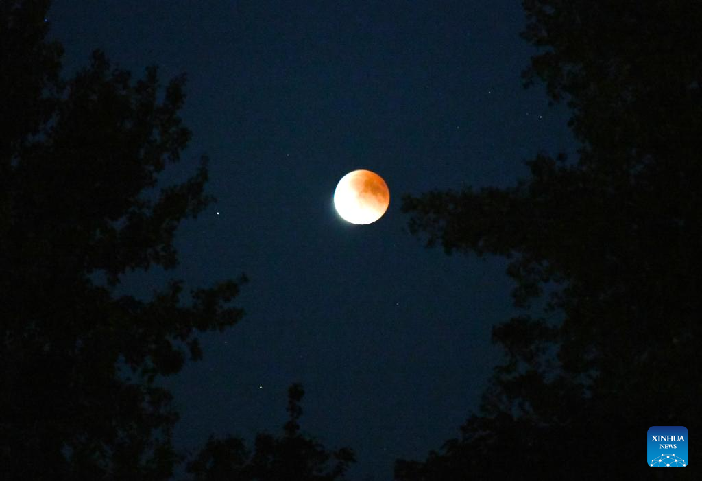 The lunar eclipse is pictured in Berlin, Germany, Sept. 7, 2025. The Archenhold Observatory opened to the public free of charge on Sunday evening, allowing visitors to experience the charm of astronomy up close. (Xinhua/Zhang Haofu)